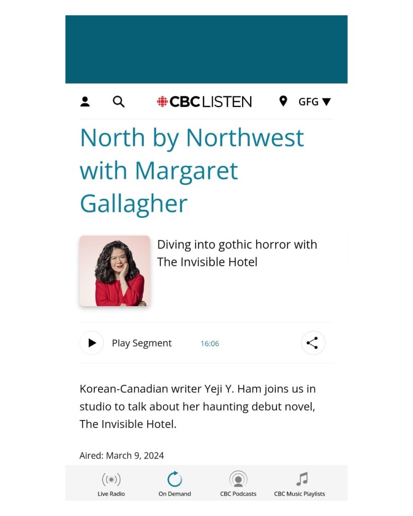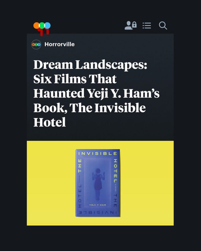 “Yeji Y. Ham’s The Invisible Hotel is an absolute fever dream—a book that explores, with haunted grace and magical wildness, the inescapable ghosts of a fractured, heartbroken country, and one woman’s relentless quest to rush headlong into the labyrinths and mysteries that make up her family. What a thrill to read this: propulsive, electric, full of fury and ecstatic writing, you won’t be able to put this one down.”